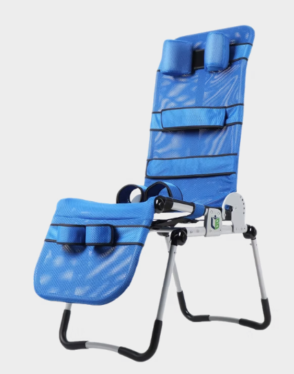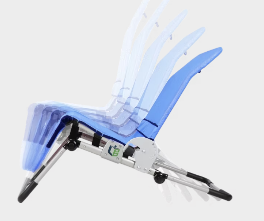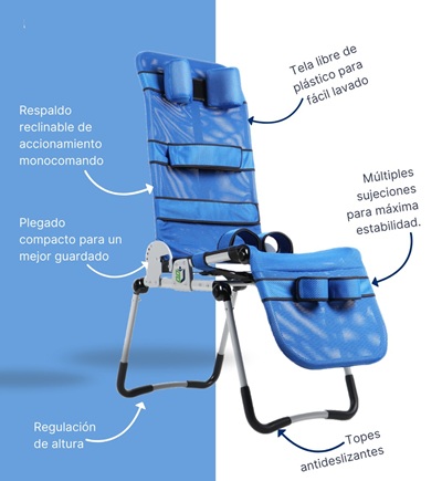 Reposera de baño articulada con multiples posiciones al momento del aseo, para brindar tanto al usuario como al cuidador una buena experiencia.