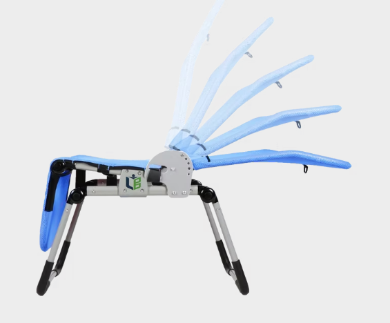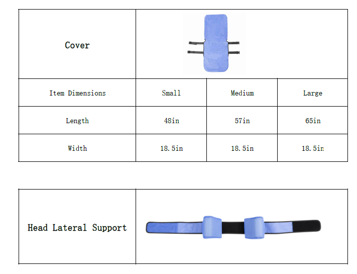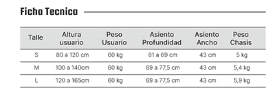 Sus diversas sujeciones permiten mayor control al usuario manteniendo su postura y estabilidad en las distintas posiciones de acostado, sentado o en supino. Su tela respirable libre de plástico genera una sensación cálida y suave al tacto.Estructura liviana de aluminio y plegado compacto que facilitan su guardarlo y transporte.